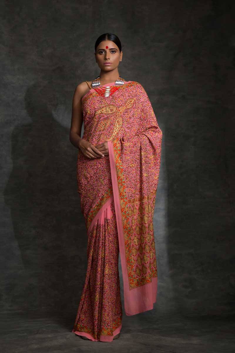 The traditional finest Jamawar saree is the new definition of Grandeur and Grace. A Jewel from a Kashmiri treasure trove is the wardrobe essential for all generations.