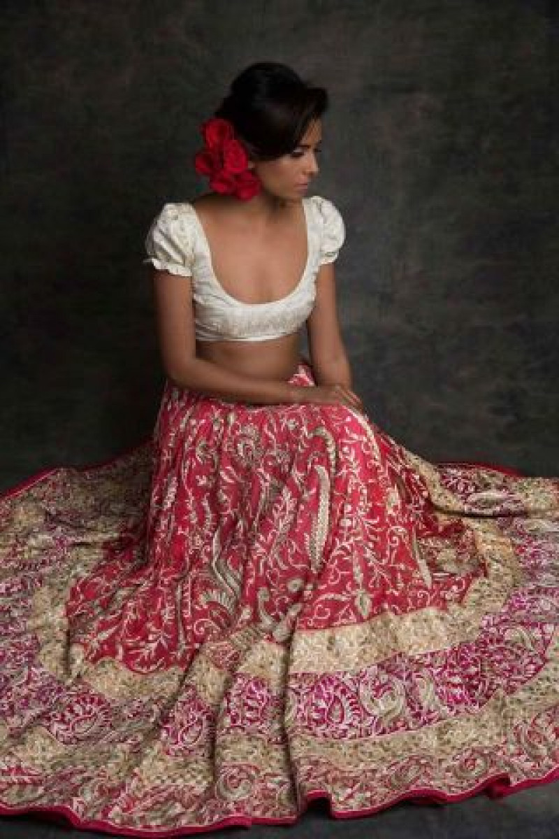 Lehenga/Blouse/Dupatta set Rose Pink Bridal Lehenga adorned with our signature Peacocks with elaborated tails symbolizing the Eyes of the stars and signifies the Royalty of Indian heritage and culture.