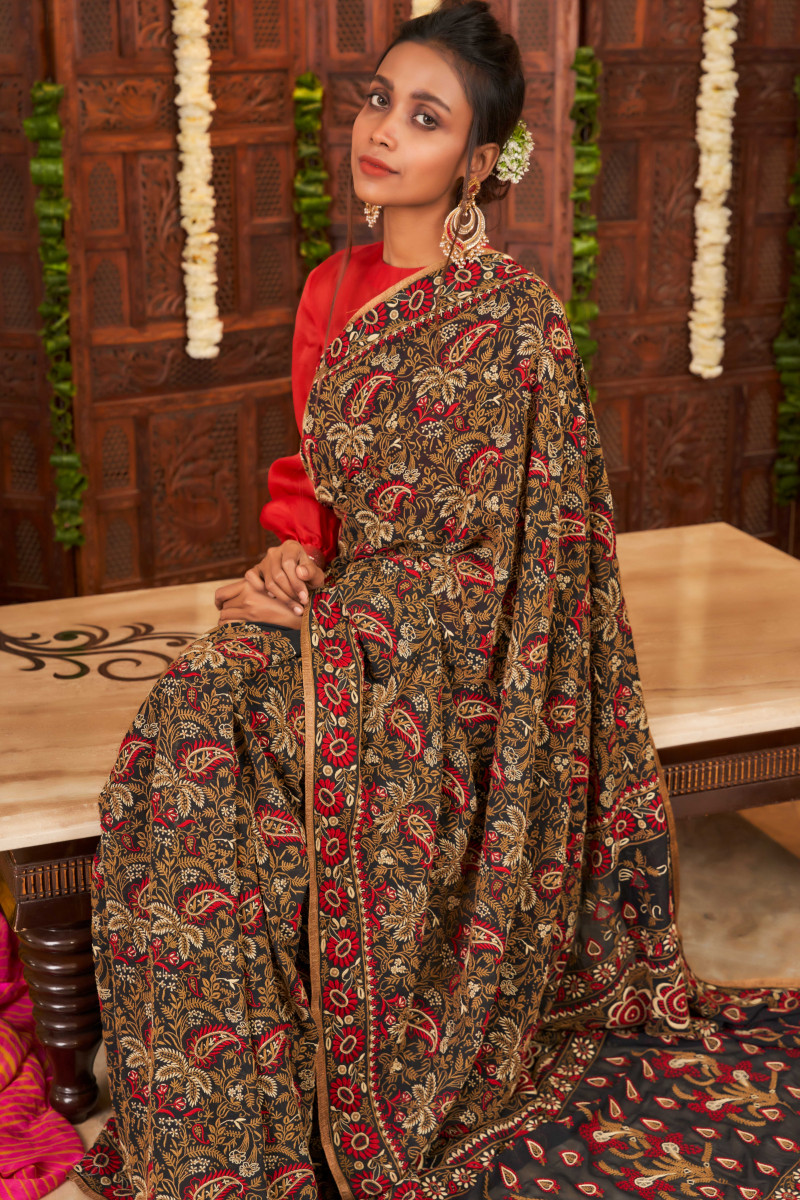 Includes- Black embroidered blouse fabric, which can be customized as per your size & Requirements