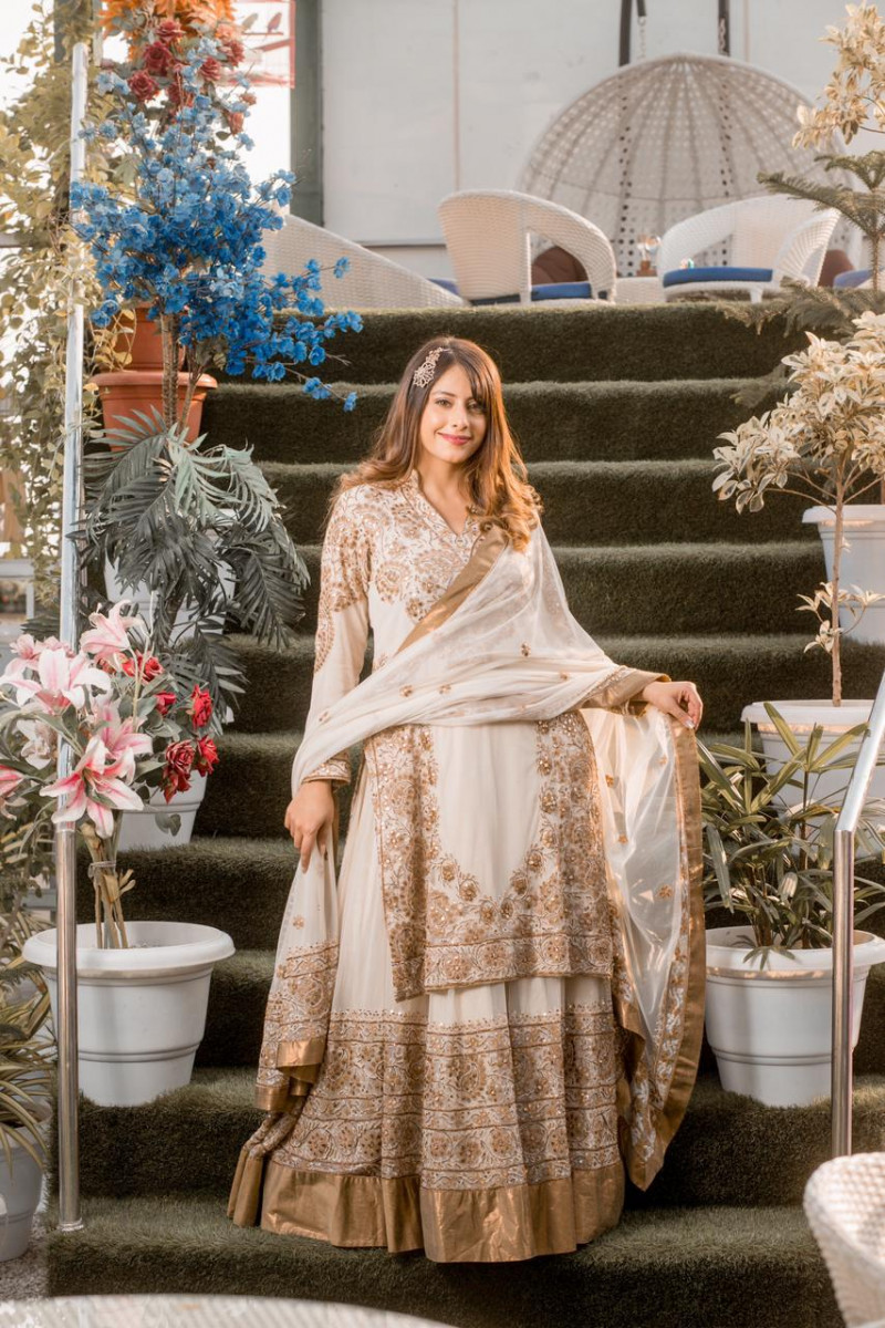 The royal chikan embroidery with the allover highlighting of traditional finest Gota- Patti work