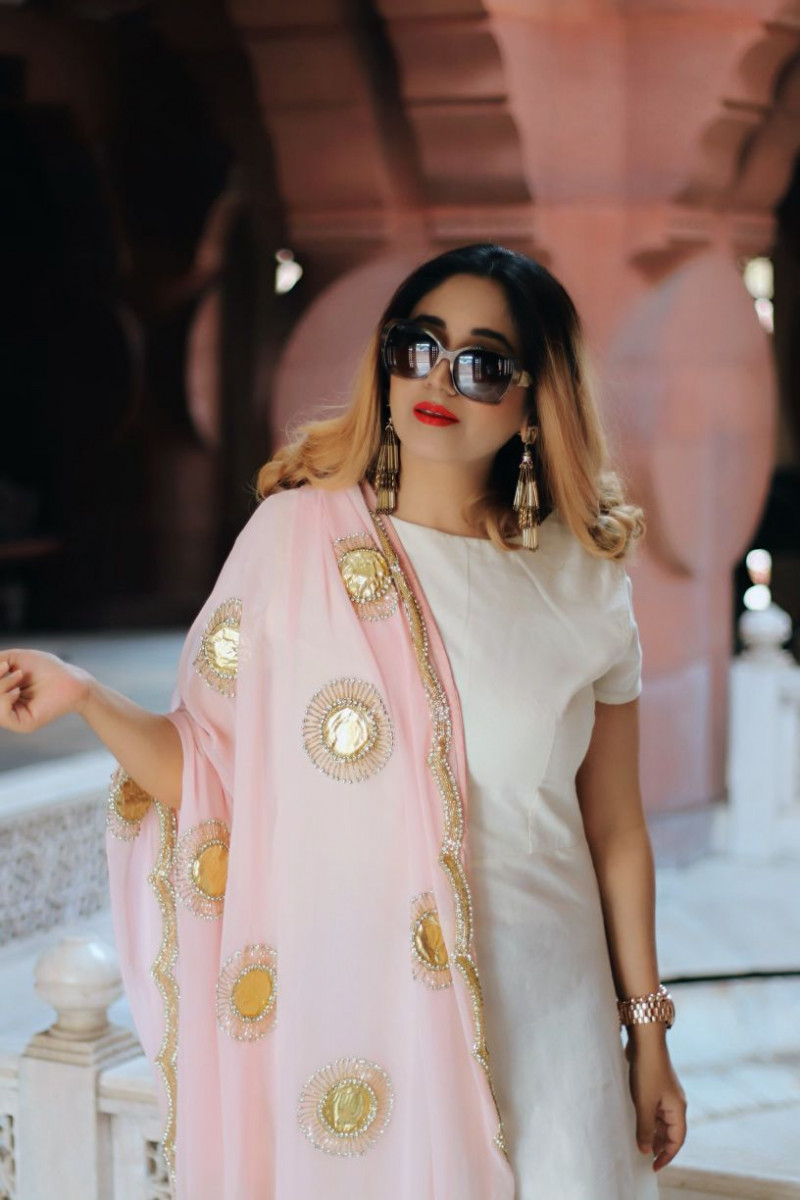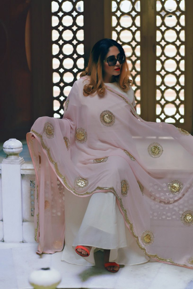 A dupatta symbolizing elegance of traditional hand embroideries, which has gold Gota-Patti, fused with Pure cutdana work. Simply best for all grand ceremonies, if you style it with heavy RD suit. Or you can team it with a light dress and move out for light Festive occasion.