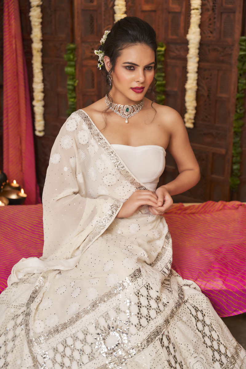 Includes- Heavy embroidered white blouse fabric. Which can be customized as per your size & Requirements.