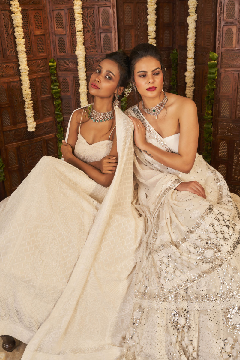The lehengas can be dyed in any shade of the Bride’s choice to make this perfect for her Big Day.